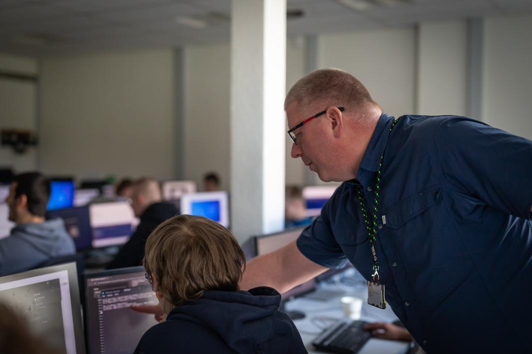 Die Teilnehmerinnen und Teilnehmer werden von Herrn Plaschke und einem IT-Fachlehrer begleitet.