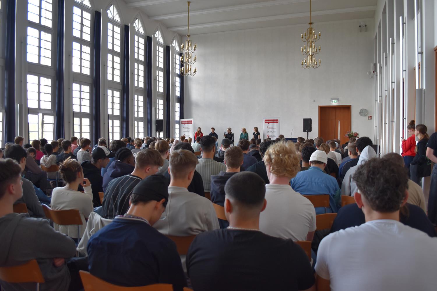 Am Freitag, den 12.09.2025, nahmen 170 Schüler*innen aus den Mittel- und Oberstufen der Bildungsgänge, die zum Fachabitur und Abitur führen, an der Veranstaltung „Ausbildungsoffensive“ teil. Die Veranstaltung stand unter der Schirmherrschaft der Bundesagentur für Arbeit NRW.