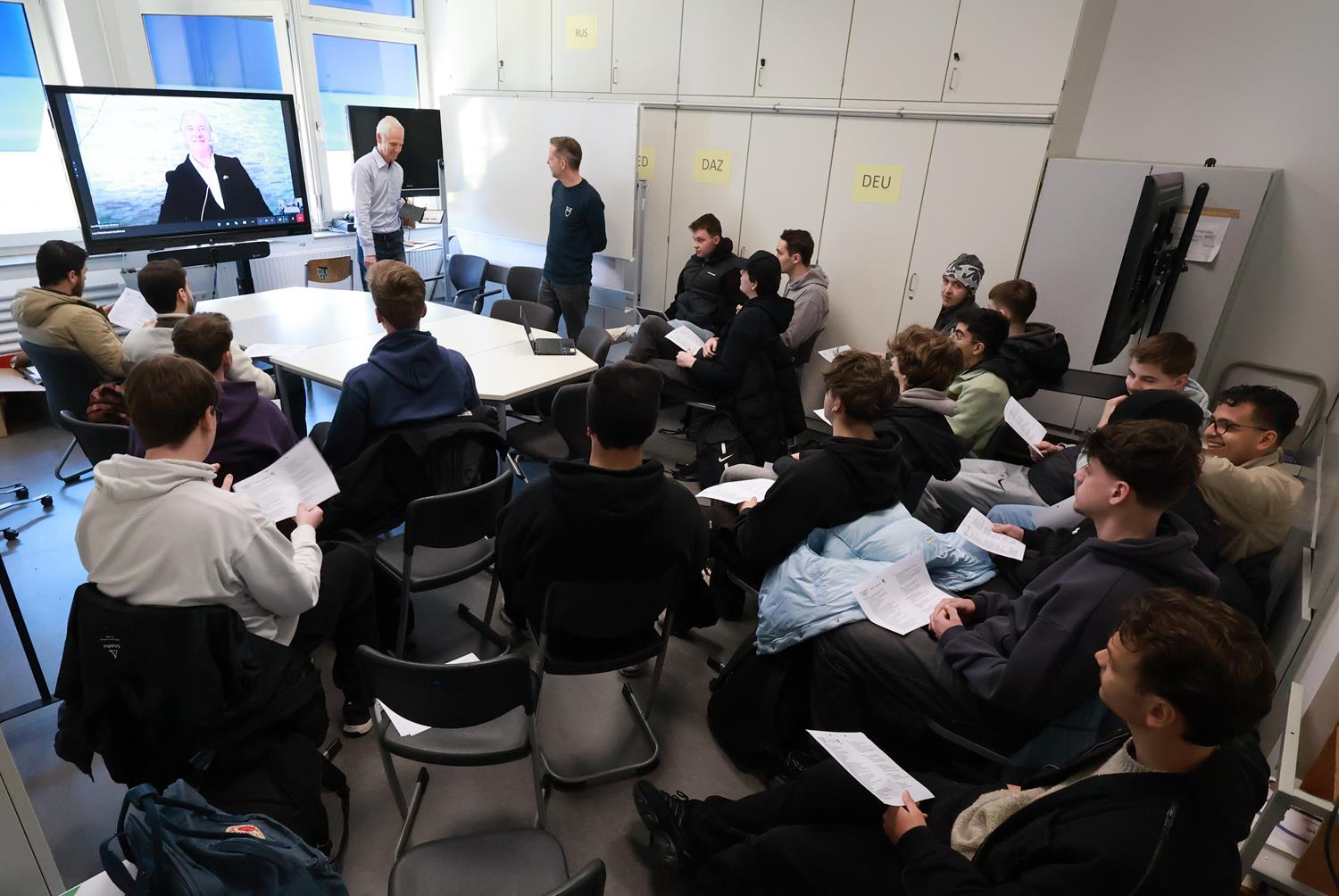 Die Schüler der zweijährigen Berufsfachschule am Hans-Böckler-Berufskolleg waren Teil einer besonderen Unterrichtseinheit: In einer durch die „Lea Fleischmann-Bildungsprojekte“ ermöglichten Videokonferenz mit Ben Yehuda befassten sie sich intensiv mit dem Thema Judentum.