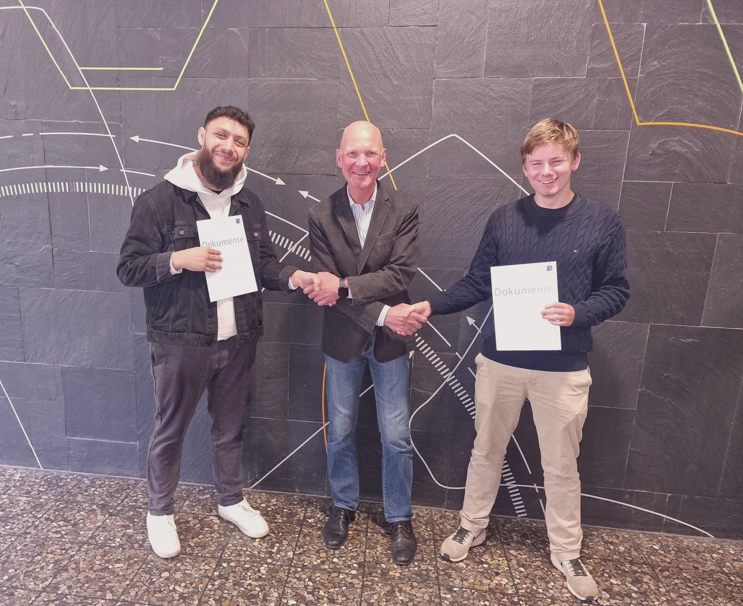 Alvin Dukolli (l.) und Florian Gerdes (r.) hatten ein Schuljahr lang den Abendkurs Englisch am