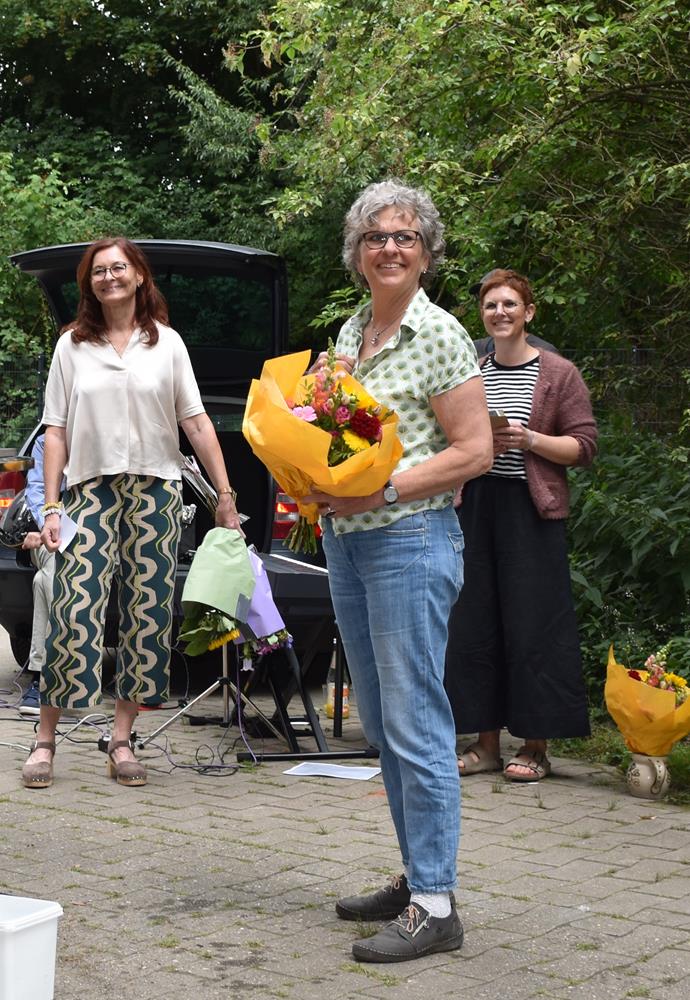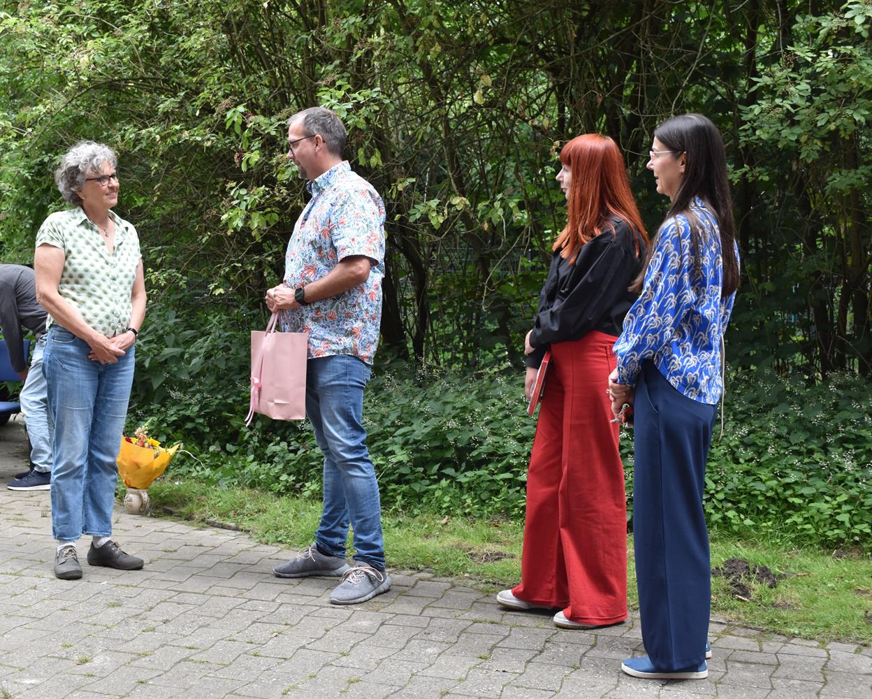 Schulleiterin Simone Waltermann (re.) dankte den drei Lehrkräften für ihr großes Engagement und ihre wertvollen Beiträge während ihrer langjährigen Tätigkeit am HBBK.